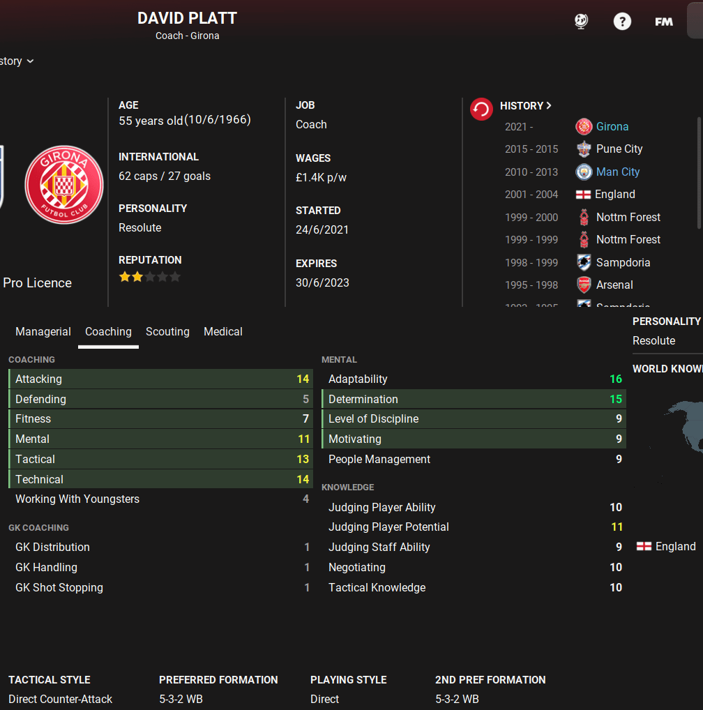 Ideally, we want coaches know the 352/532 system, who have good adaptability, tactical knowledge, technical coaching ability and importantly a good personality. We’re building a “team of coaches” who all have similar beliefs and styles, not a random collection of coaches. As per with the players, it’s not about getting the BEST coaches but its about getting the RIGHT coaches. (You can read FM Athlete’s inspirational blog on this topic).