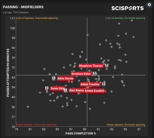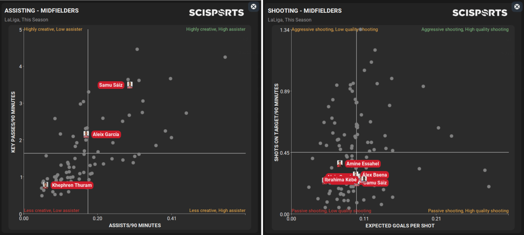 As far as the assisting chart goes, it’s frustrating because Saiz and Garcia are both on set pieces, which aren’t taken out of the key passes metric, so the data is more or less useless for them both as it’s skewed.