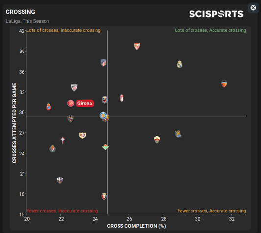 We’ve covered how we’re hoping to get the ball into out opponents final third more often but we’ve mainly talked about passing. One of strengths last season was our crossing. We finished the season ranked 4th for crosses with a completion ratio of 27%.