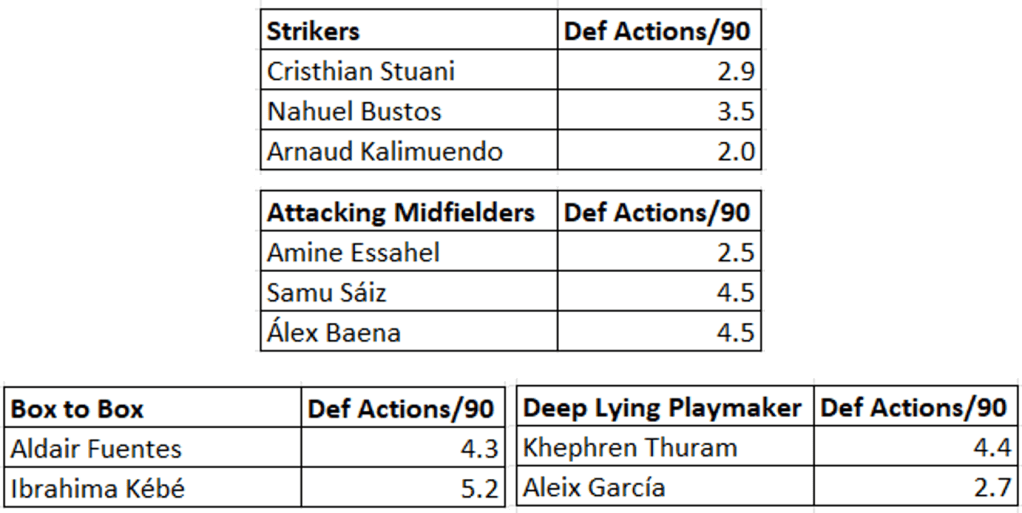 Now would be a good opportunity to looks at the players defensive actions for the roles through the middle of the park: