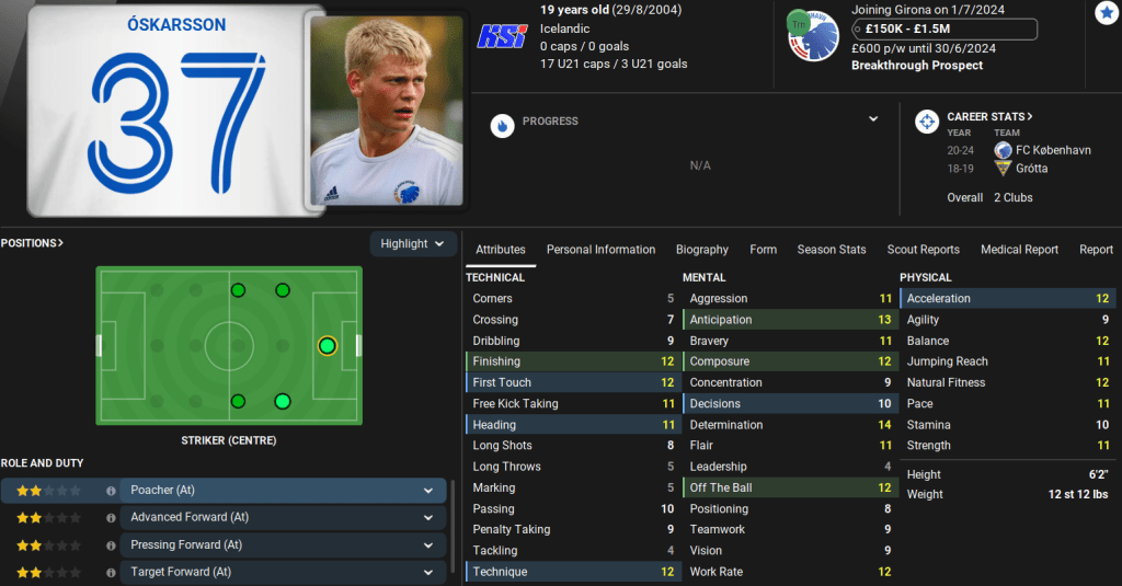 The transfer window shut, thankfully with very little activity. With no transfer budget available we’d have to sell to bring anyone new in and with Gnagnon injured we received no bids. I managed to sign a pre-contract agreement with youngster Orri Steinn Oskarsson from FC Kobenhavn who is a promising youngster with La Liga potential.