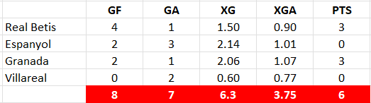 Looking at the stats you can see why I was annoyed at the loss to Espanyol, and gutted to lose 0-2 to Villareal