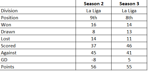 That’s right, we’d won 1 game from 8 La Liga matches, yet we had hopes of qualifying for the European places! HA! What a fool!