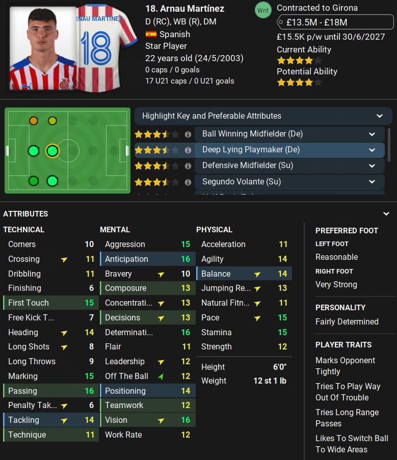 On to Martinez himself, taking a look at his attributes below you’ll very probably have one particular role screaming out at you.
