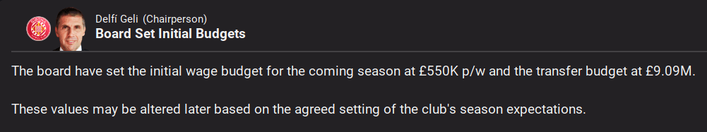 The last few seasons I’d been only given a few million transfer budget so I was a little anxious whilst waiting for the initial budgets message to drop into my inbox.